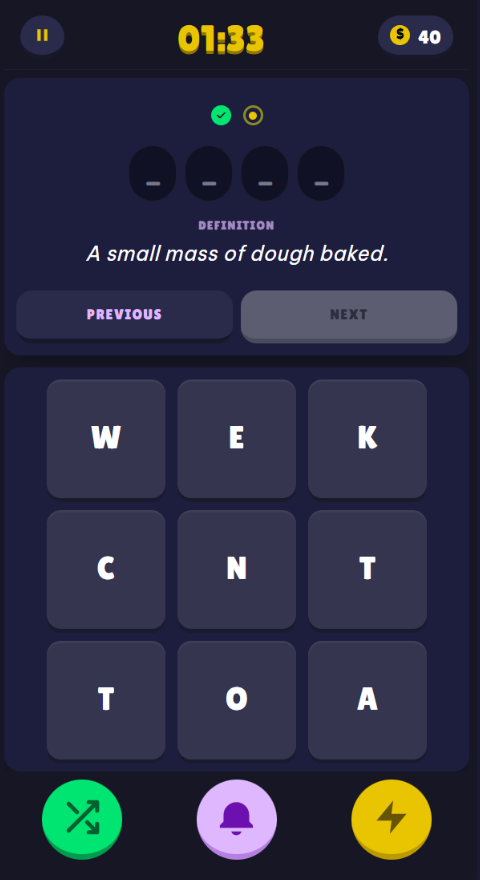 - Toggle: Click the definition area (or use Tab) to switch between unsolved words in a stage.