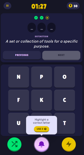 - Lightning Bolt: Instantly place the next correct letter in its slot.