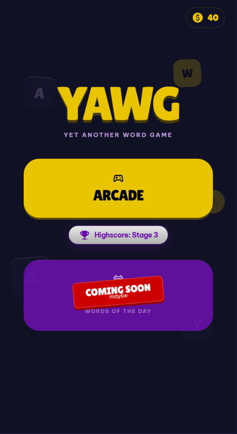 I built YAWG (Yet Another Word Game) as an experiment in arcade-style puzzle design. The goal was to take the familiar "word search" format and flip it: instead of scanning for hidden words, you are given dictionary definitions and must construct the answers from a shared grid of tiles.